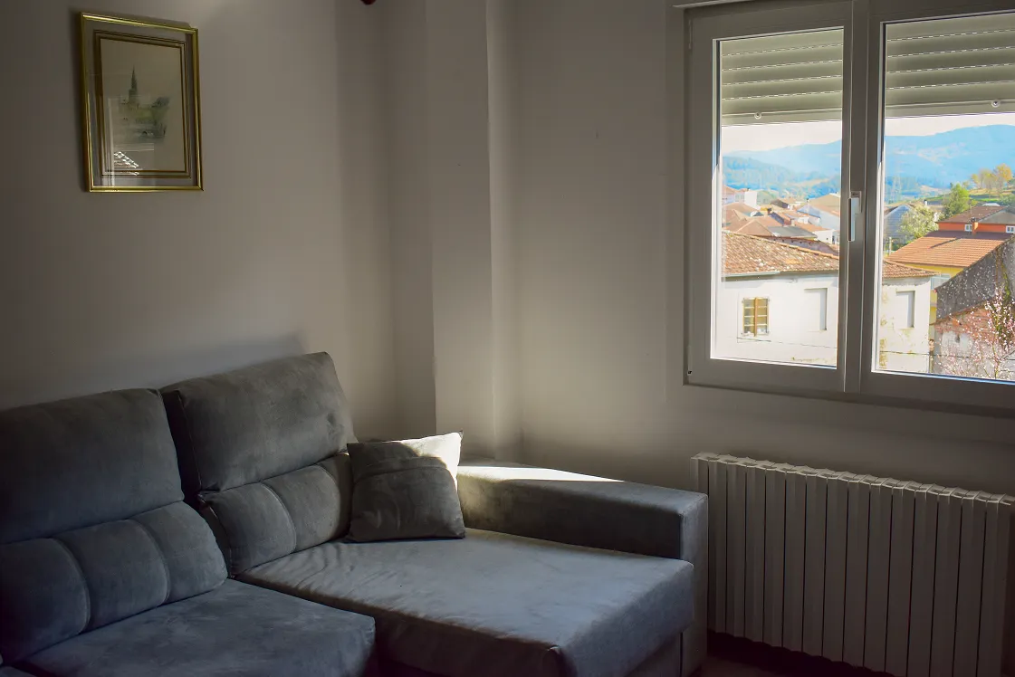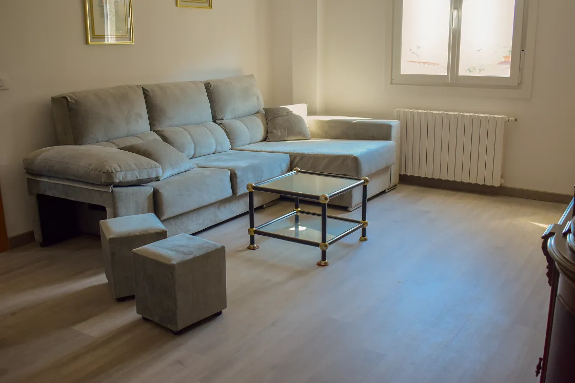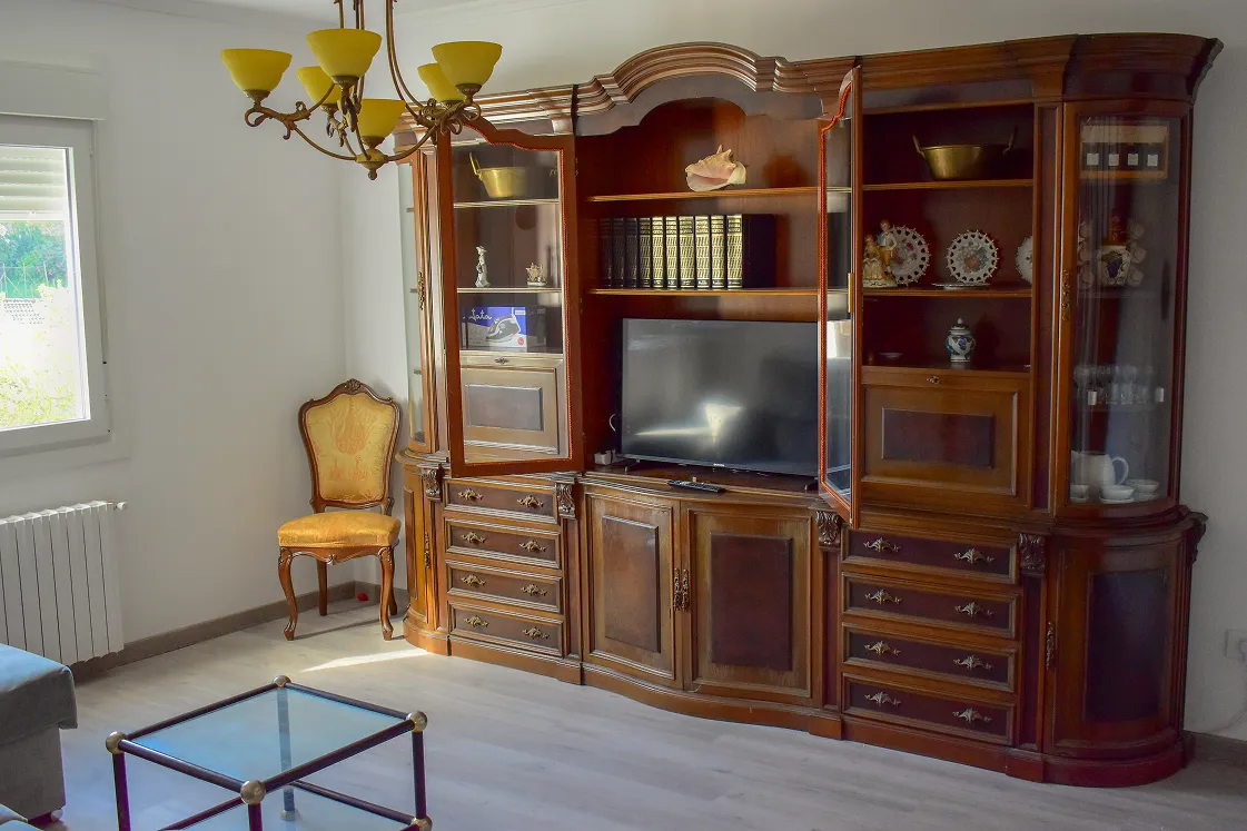 Un espacio amplio con sofá, mueble y televisión, perfecto para compartir momentos de relax o planificar el día.